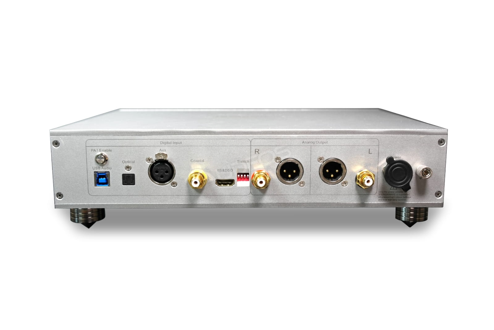 SOUNDAWARE DAM1 ma konstrukcję z odseparowanym zasilaniem, co lepiej chroni obwód audio przed interferencjami. Producent umożliwia wybór jednego z dwóch autorskich zasilaczy: